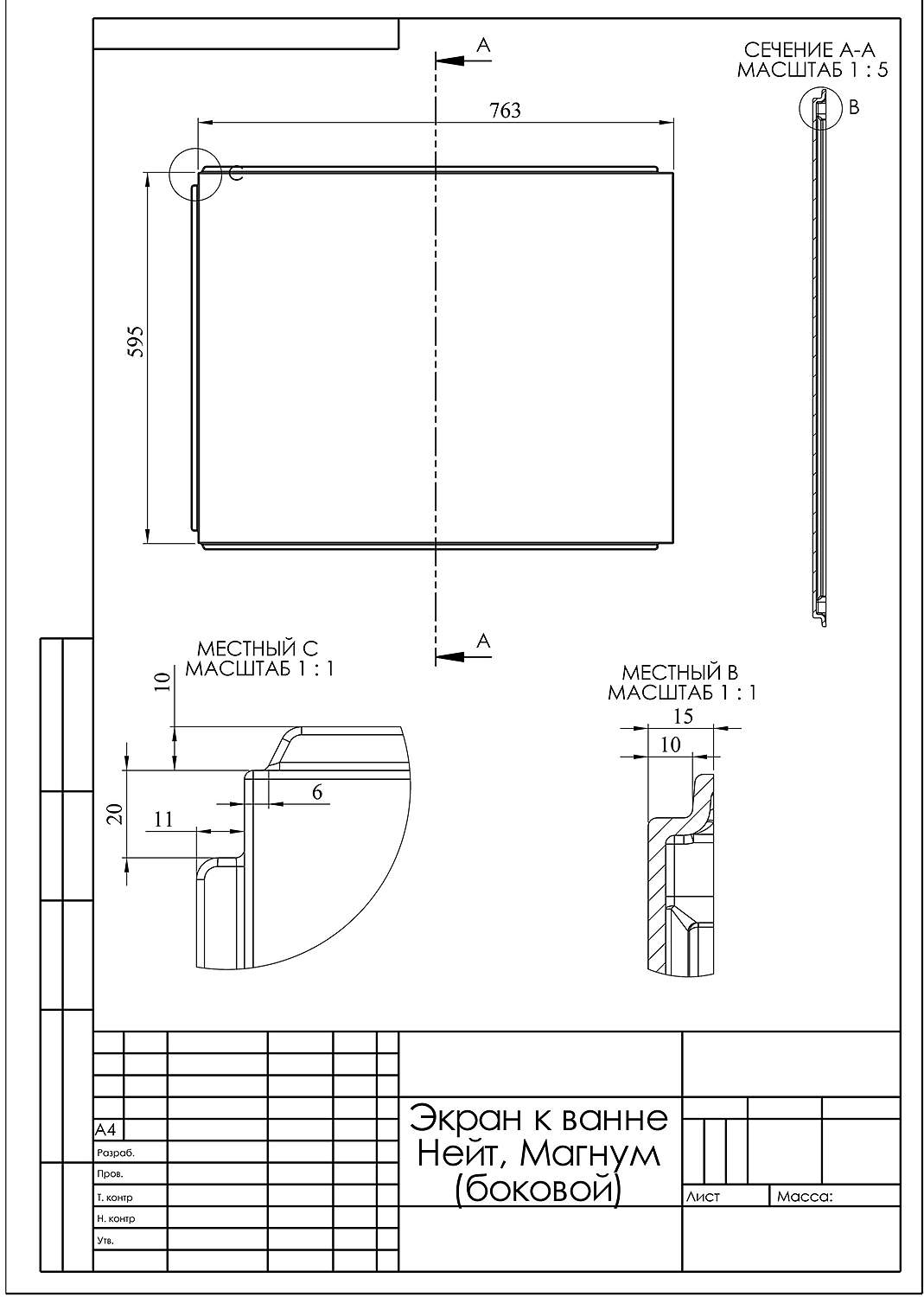 Панель боковая ASTRA-FORM для ванн Нейт, Вега, Вега Люкс, Магнум 80