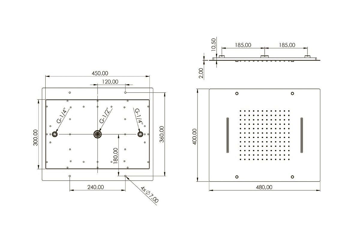 Встраиваемый верхний душ на 2 режима (потолочный) 45х30.