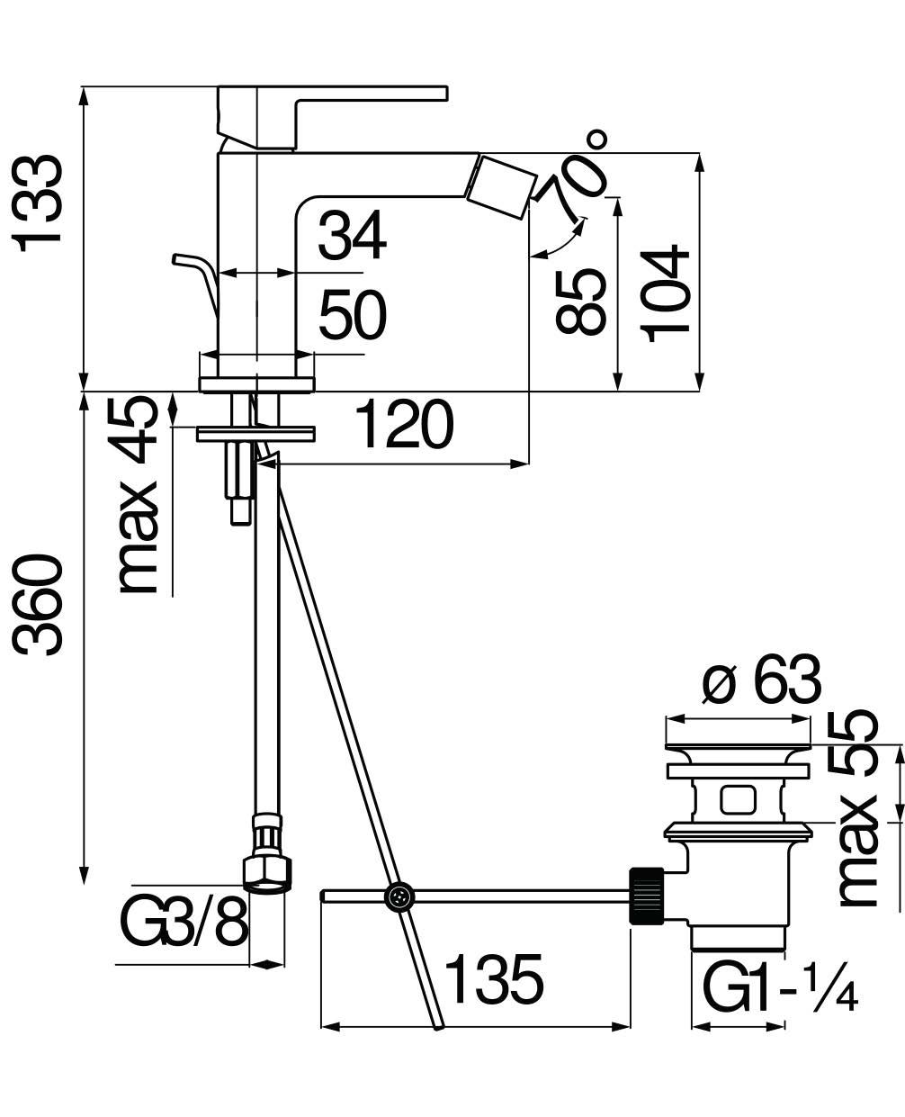 —Смеситель для биде NOBILI Up с донным клапаном UP94119/1BM Velvet black
