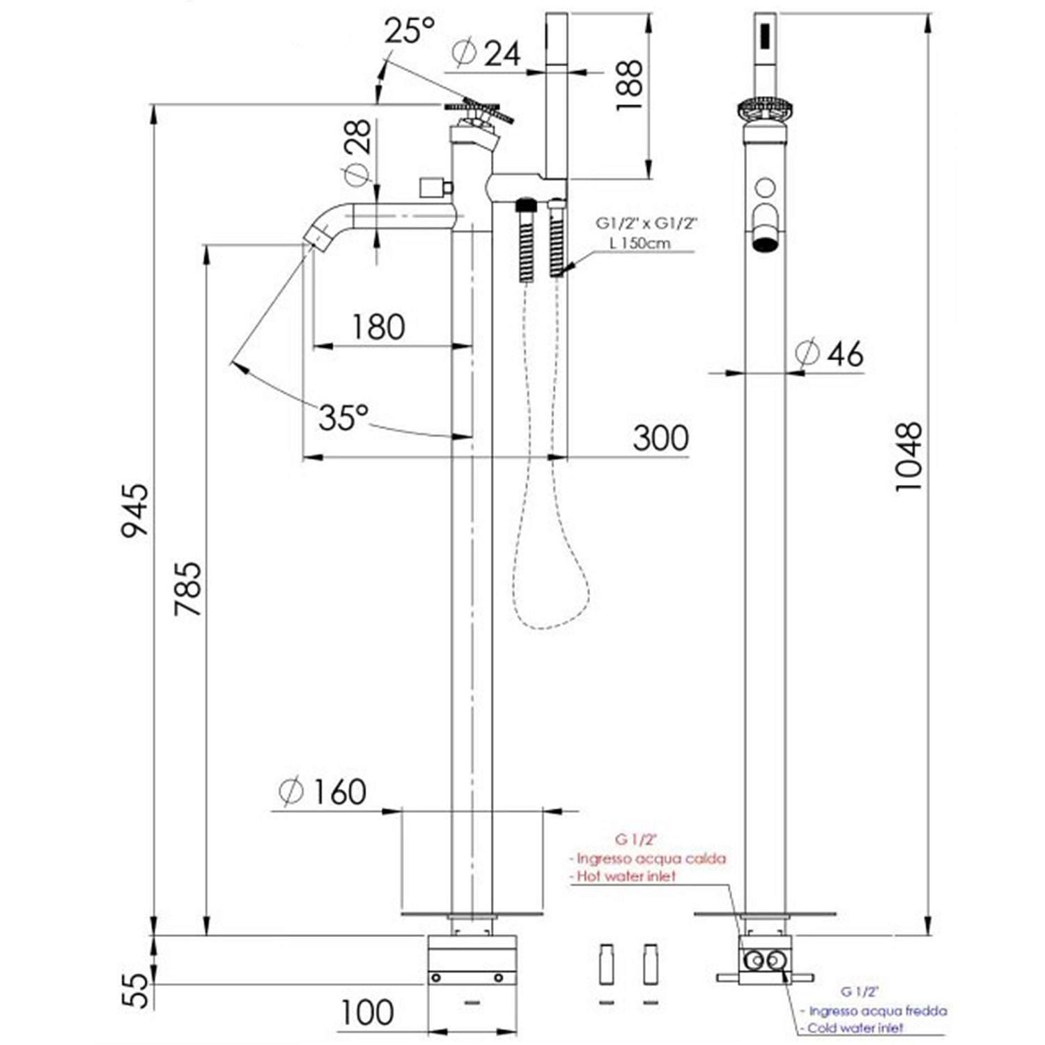 —Смеситель для ванны REMER Chrono CH08BG золото брашированное